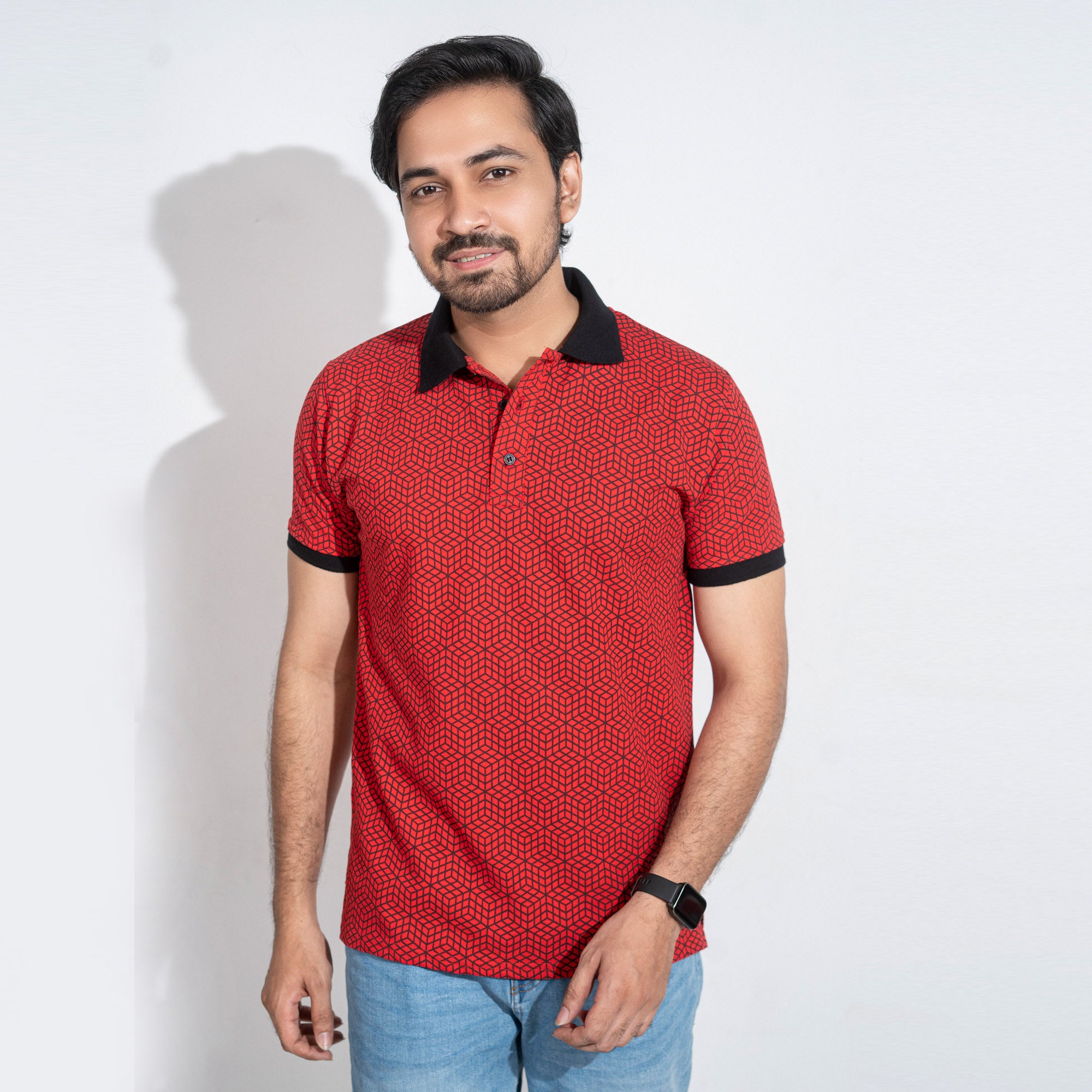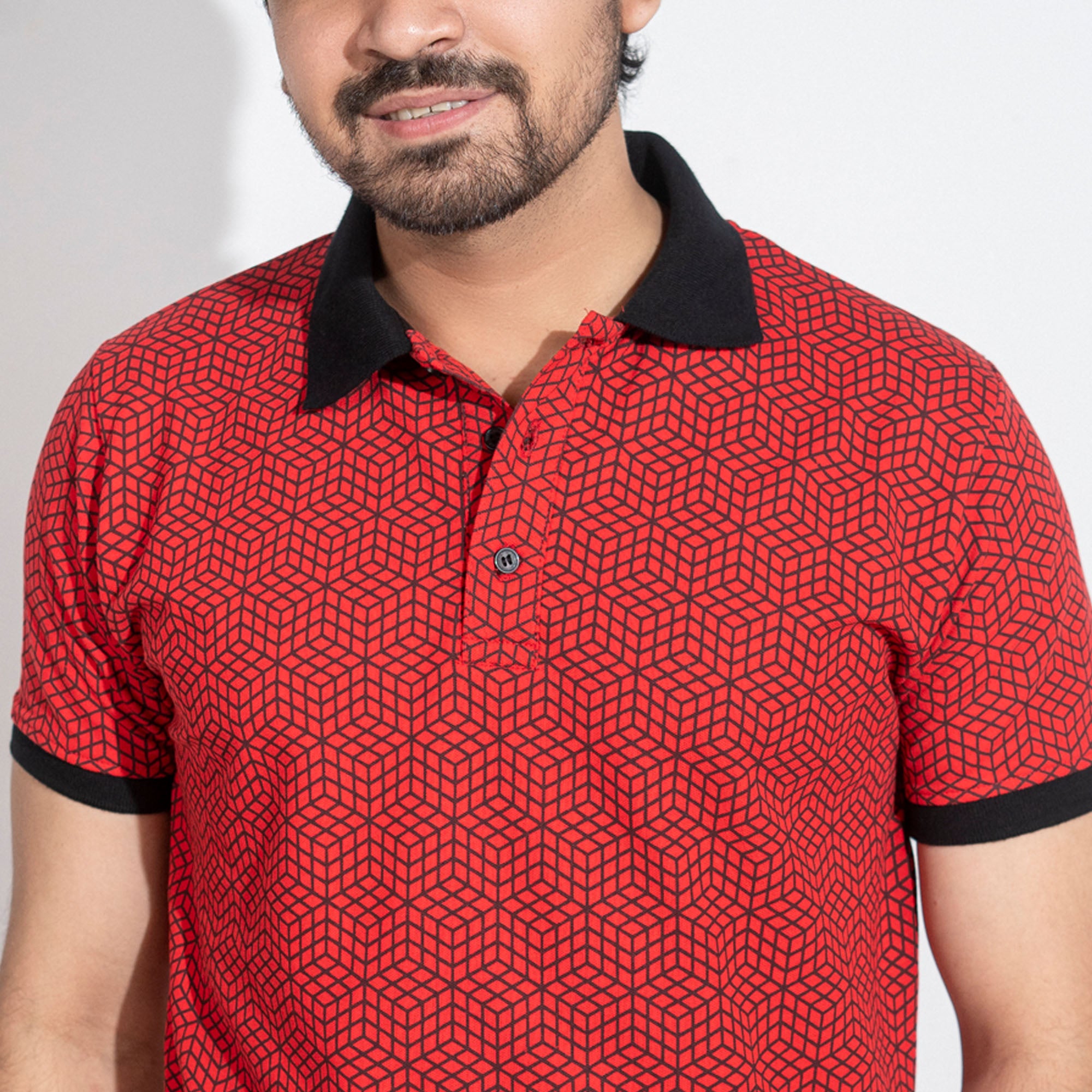 "Get lost in the intricate design of our Classic Maze Printed Polo and find your unique fashion statement
