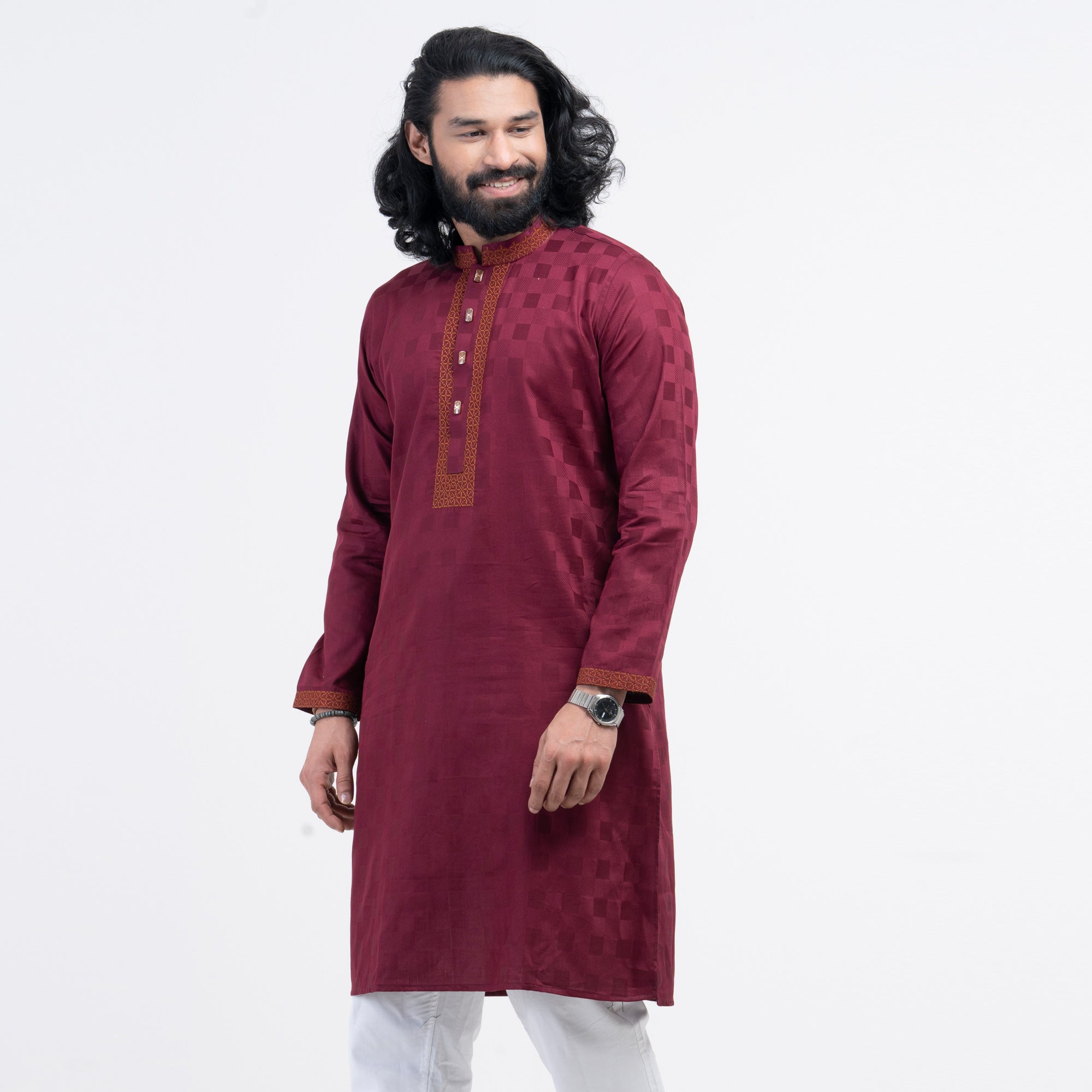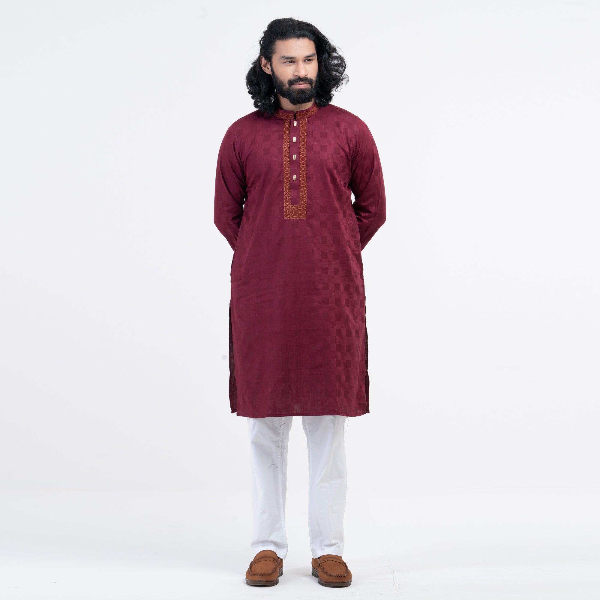 Embro Semi Fit Panjabi - Maroon