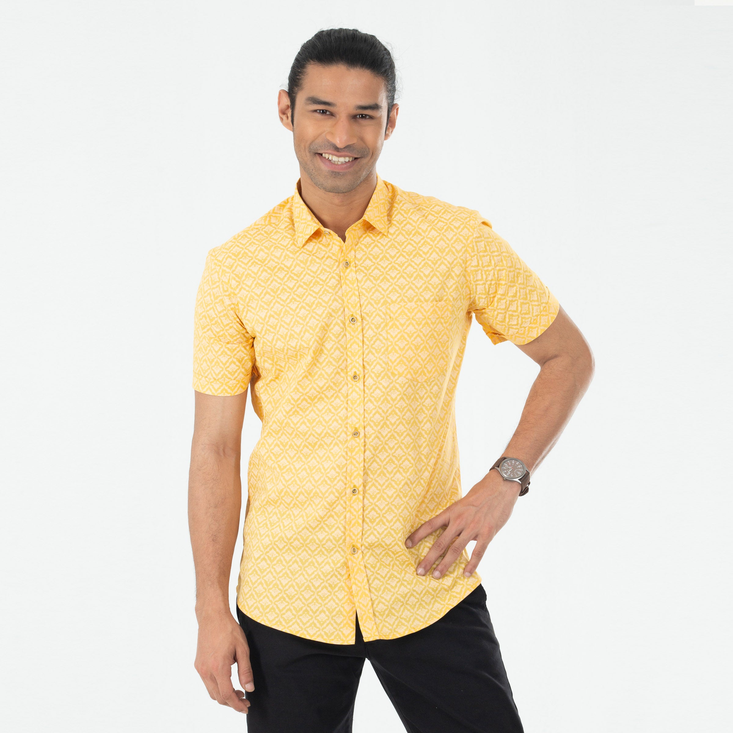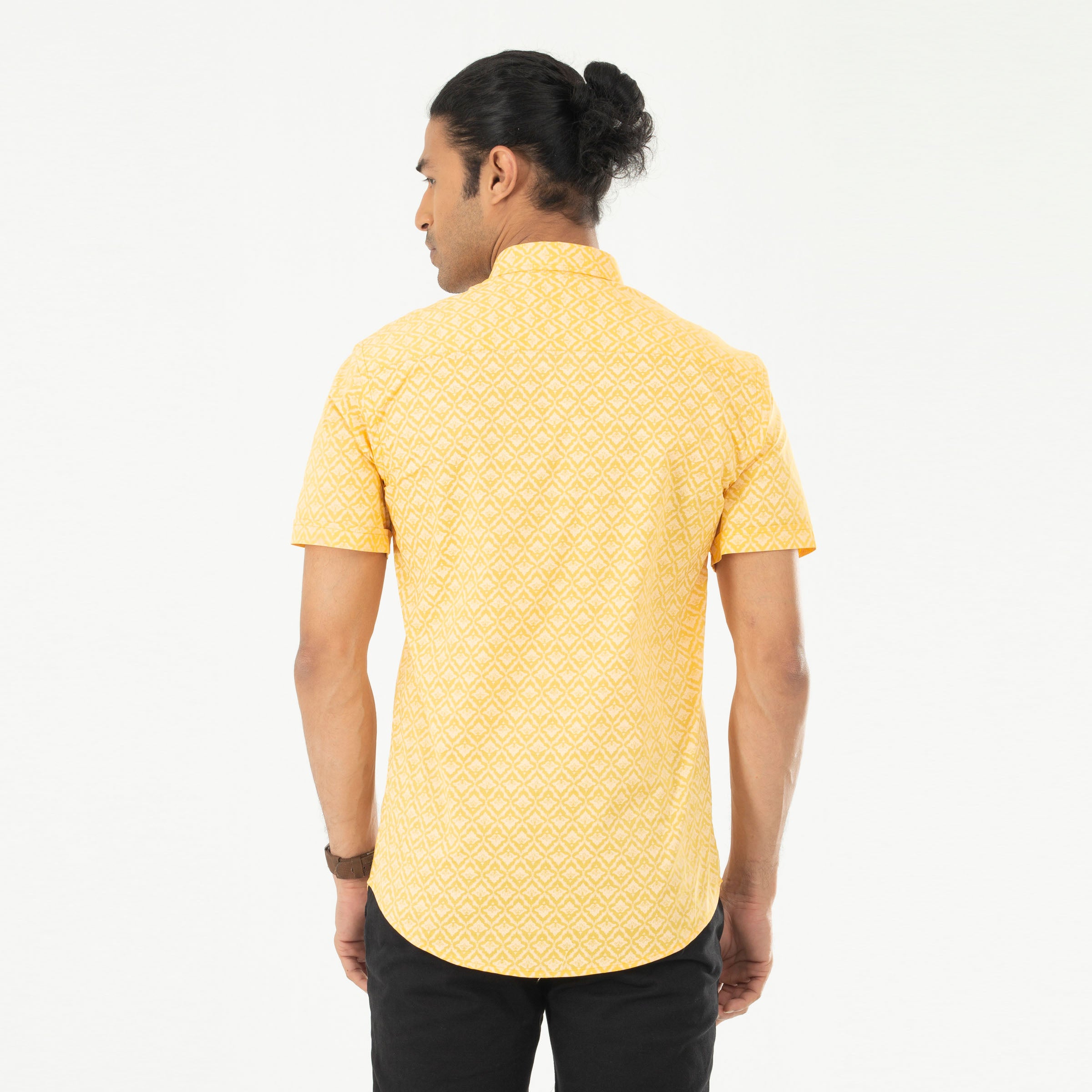 Casual Printed Half Shirt - Mustard Yellow