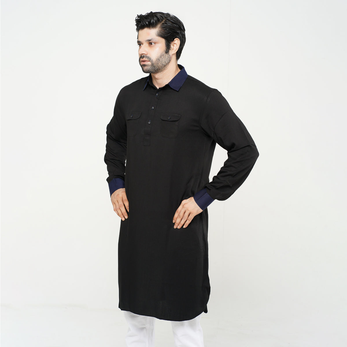 Kabli Panjabi- Black & Navy