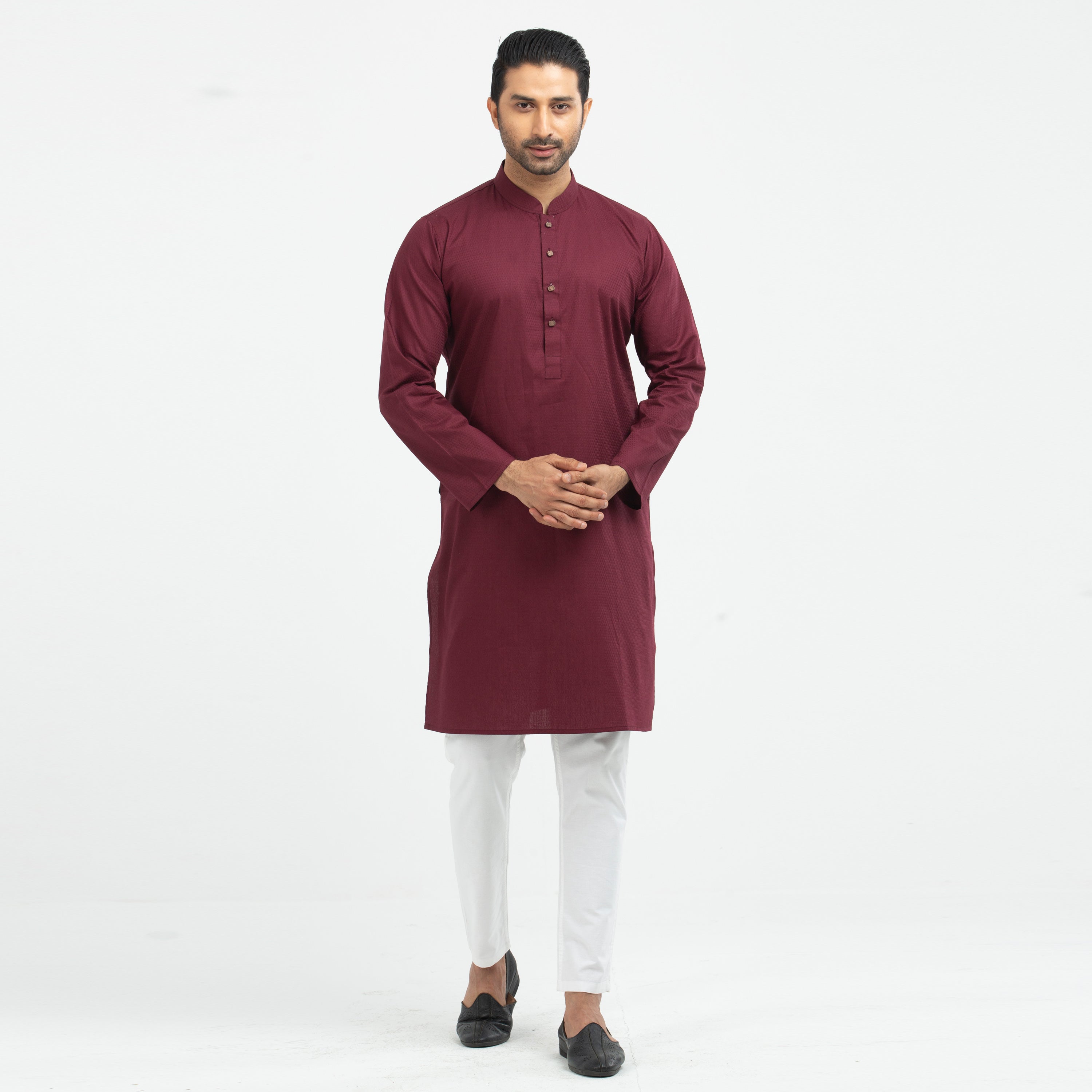 Textured Semi Fit Panjabi - Maroon